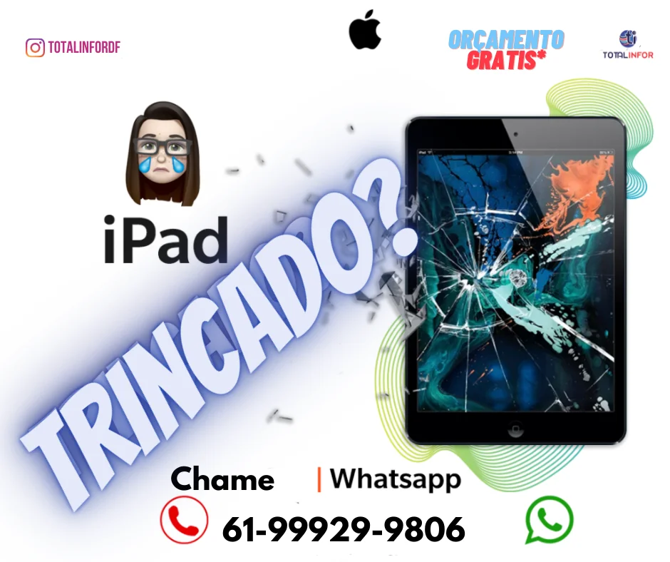 Fale Agora com um Técnico (a)Dentro de uma assistência técnica Apple, o conserto de iPad é um dos serviços mais solicitados, principalmente se pensarmos nos pedidos para se trocar tela de Vidro iPad 5ª 6ª 7ª 8ª 9ª Geração . É fácil explicar porque isso acontece: o iPad é um dispositivo que é utilizado por muitas horas por dia e por mobile, está com o usuário em diferentes locais.